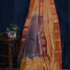 Peach and Orange Silk Saree with Contrasting Lavender Zari Pallu