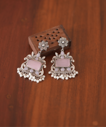 Floral Aura Studs — Oxidised Statement Earrings