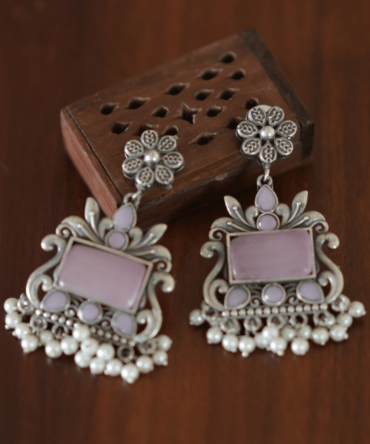 Pastel Peacock Bar Danglers — Oxidised Fusion Earrings