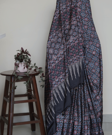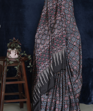 Black and Multicolor Ajrakh Print Modal Silk Saree