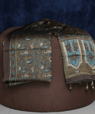 Olive Brown and Teal Ajrakh Print Modal Silk Saree