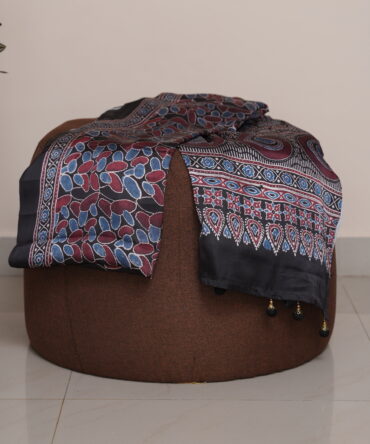 Maroon and Black Paisley Ajrakh Print Modal Silk Saree