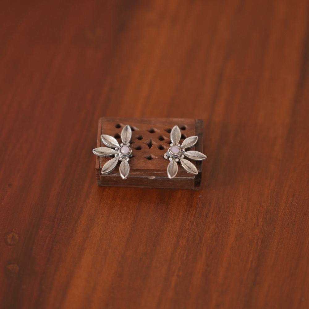 Bring a touch of nature’s grace to your style with the Silver Bloom Studs. Designed in a delicate floral motif with petal-like silver accents and a subtle stone at the center, these earrings are perfect for women who love understated beauty. Lightweight, versatile, and timeless – they’re your go-to pair for everyday chic or casual festive styling.