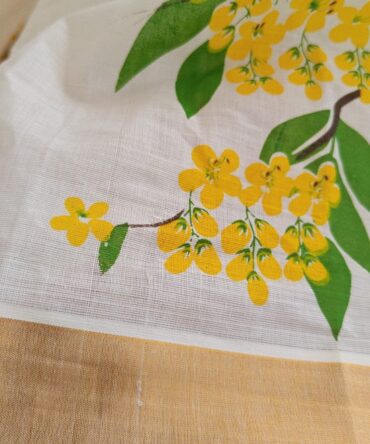 Off-White Kanikonna Print Kasavu Style Saree with Gold Border