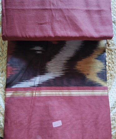 Maroon Ikat Pattern Powerloom Saree with Gold Zari Border