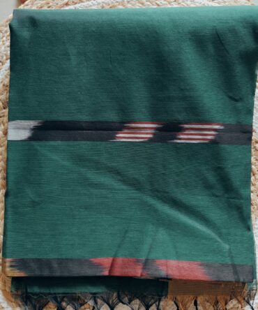 Bottle Green Ikat Pattern Powerloom Saree with Gold Zari Border