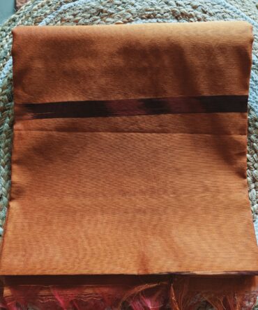 Rust Orange Ikat Pattern Powerloom Saree with Gold Zari Border