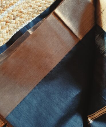 Classic Black Ikat Pattern Powerloom Saree with Copper Zari Border