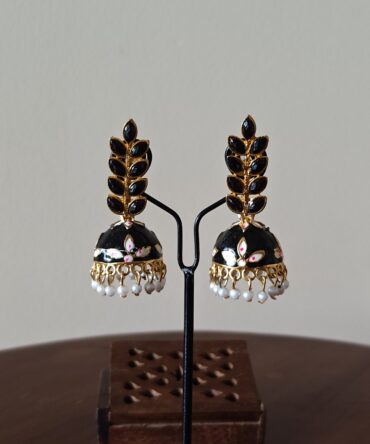 Midnight Black Meenakari Pearl Jhumka Earrings — Elegant Festive Jewelry