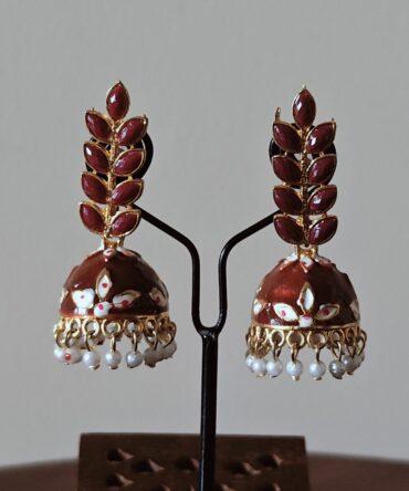 Maroon Meenakari Pearl Jhumka Earrings — Elegant Festive Jewelry