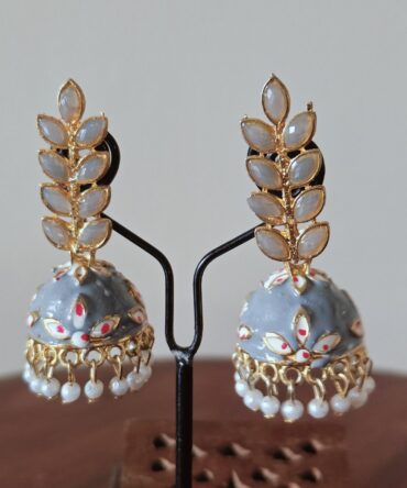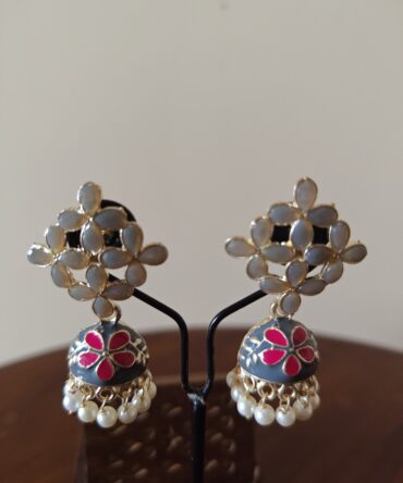 Grey Meenakari Floral Pearl Jhumka Earrings — Elegant Traditional Jewelry