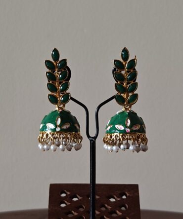 Green Meenakari Pearl Jhumka Earrings — Elegant Festive Jewelry
