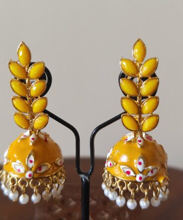 Mustard Yellow Meenakari Pearl Jhumka Earrings — Traditional Festive Jewelry