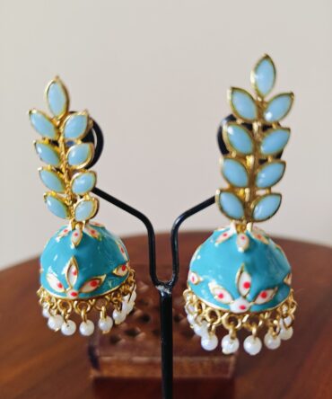 Turquoise Blue Meenakari Pearl Jhumka Earrings — Elegant Traditional Jewelry