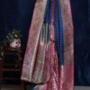 Royal Blue Banarasi Silk Saree with Rani Pink Border and Pallu