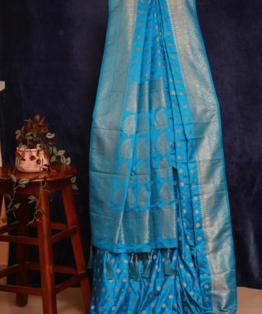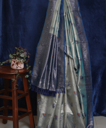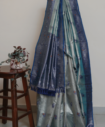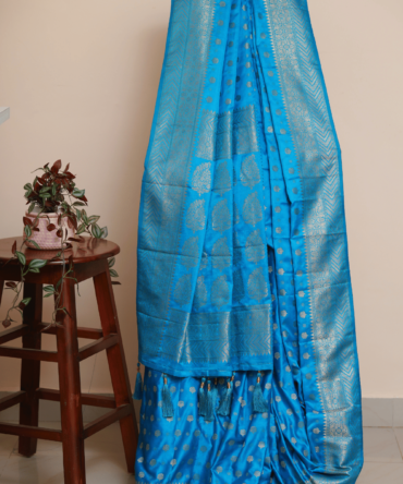 Azure Blue Soft Silk Saree with Silver Zari and Timeless Elegance