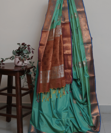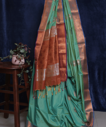 Sea Green Silk Saree with Rust Zari Border and Multi-Colour Pallu