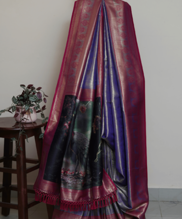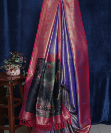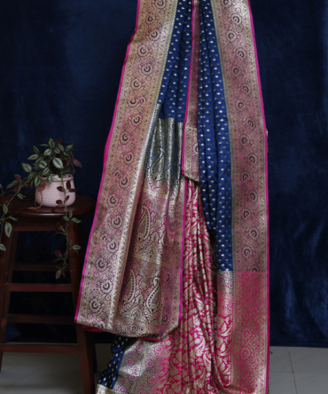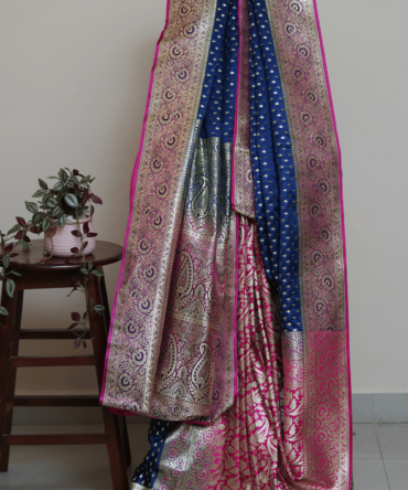 Royal Blue Banarasi Silk Saree with Rani Pink Border and Pallu