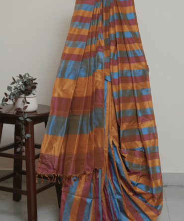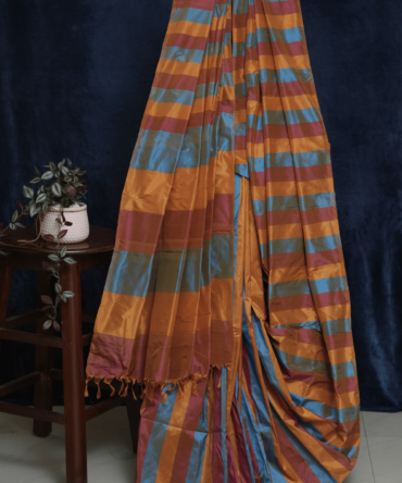 Rich Pure Silk Multicolor Striped Saree – Mustard Yellow, Blue and Maroon