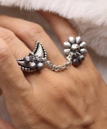 Chandraa — a silver bond of bloom and balance dual finger ring.