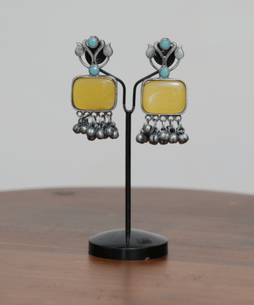 Neelara Aqua Jhumkas — Oxidised Pearl Drop Earrings