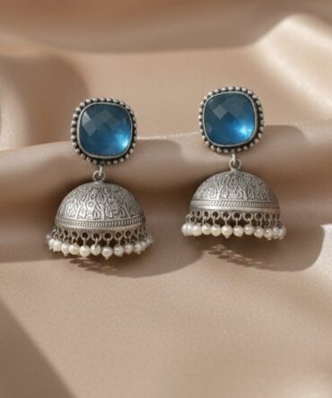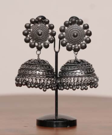Azure Dome Jhumkas — Oxidised Silver Statement Earrings