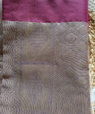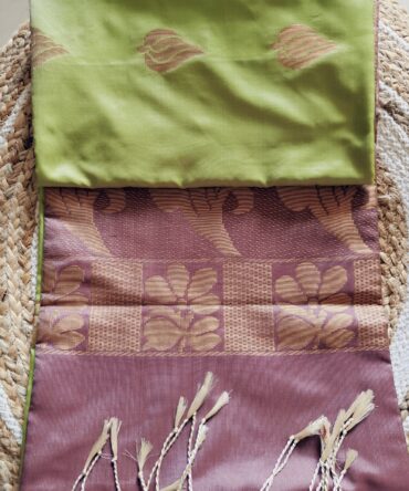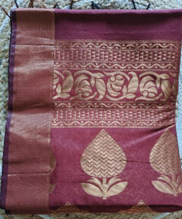 Rose Gold & Wine Thread Woven Cotton Saree with Geometric Patterned Pallu