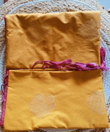 Mustard & Pink Zari Butta Soft Silk Saree — A Vibrant Blend of Tradition and Festive Charm
