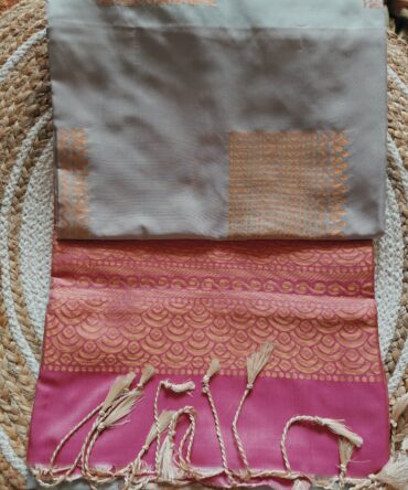 Grey & Rani Pink Butta Soft Silk Saree — Elegant Zari Butta with Rich Traditional Pallu