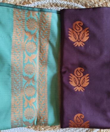 Turquoise & Purple Zari Soft Silk Saree — A Stunning Contrast of Tradition and Elegance
