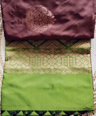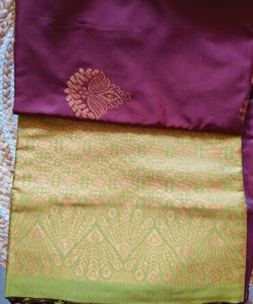 Maroon & Parrot Green Zari Butta Soft Silk Saree — Elegant Contrast Traditional Weave