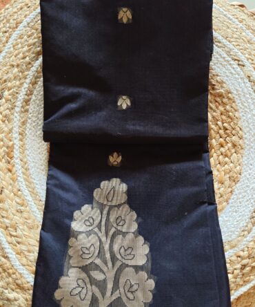 Midnight Blue Cotton Saree with Silver Thread Woven Butta & Ornate Pallu