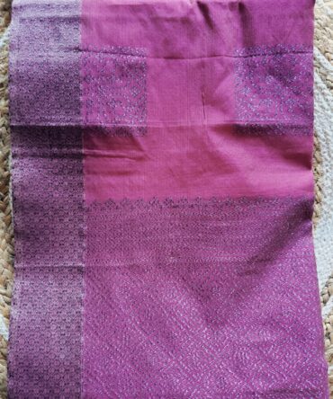 Rani Pink Saree with Plum Purple Woven Border and Geometric Butta Motifs.