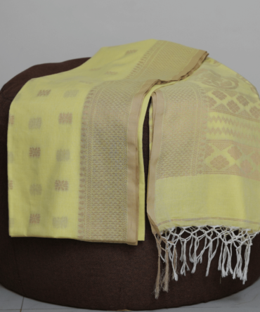 Vivid Pastel Yellow and Grey Handloom Soft Cotton Saree
