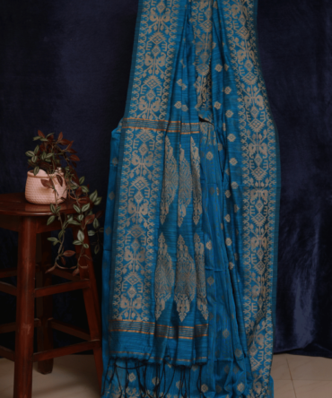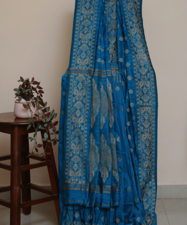 Divine Blue with Silver and Gold Ikat Motifs Silk Saree